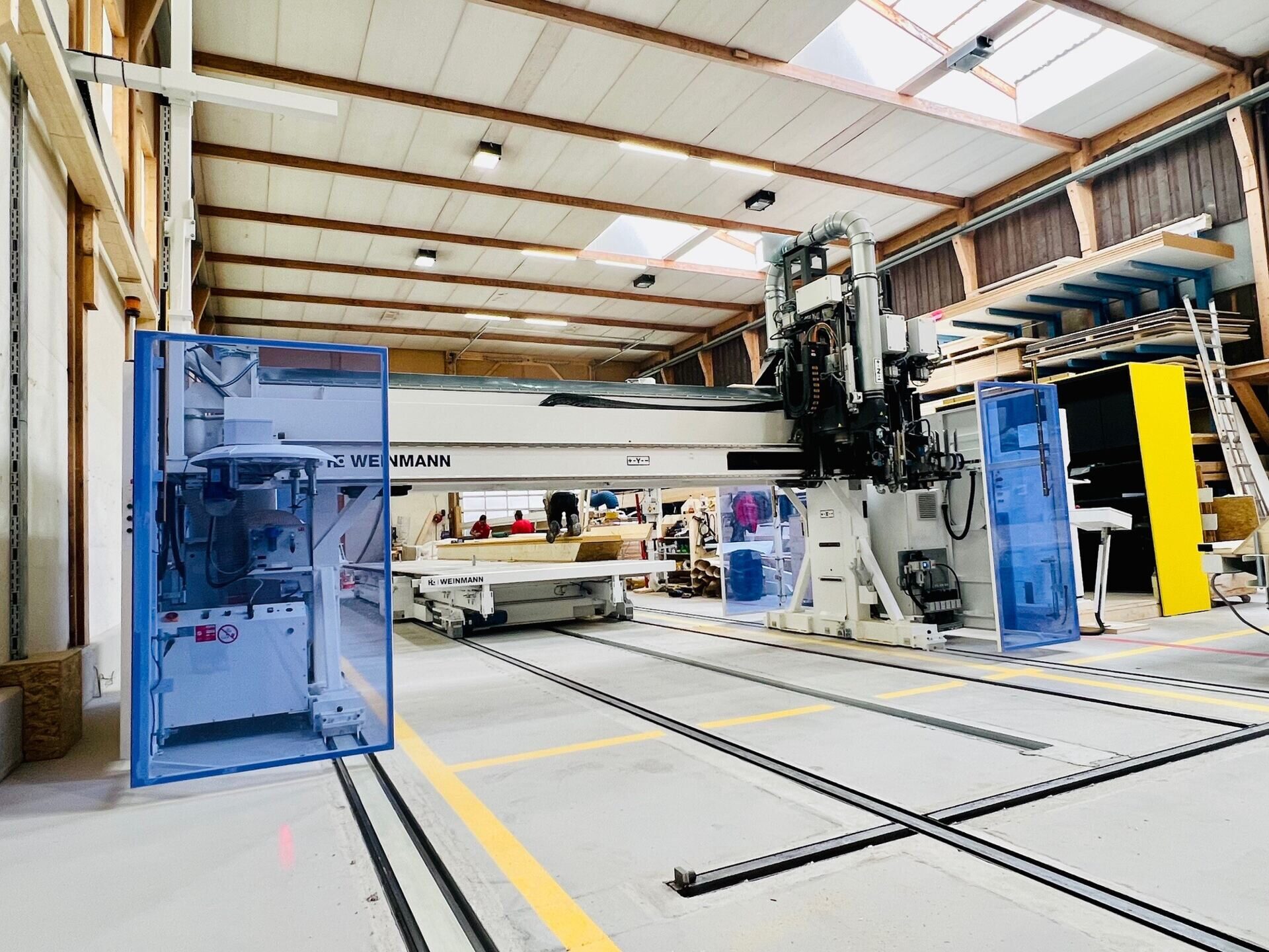 Sie bearbeitet flächige Elemente präzise und effizient ganz nach unseren Plänen: schneiden, fräsen, nageln, bohren – alles aus einer Hand.
