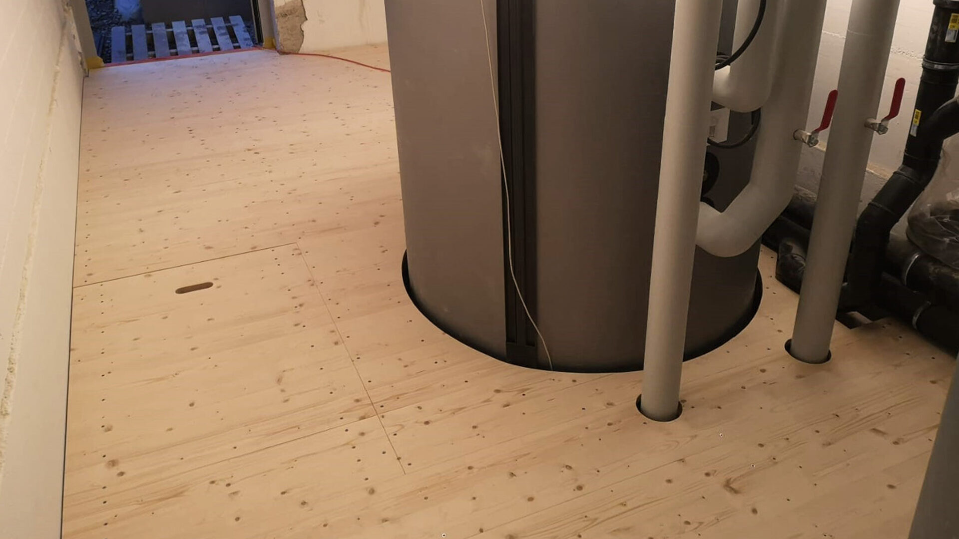 Der Boden wurde auf Schwellenhöhe angehoben. Nun kann der Technikraum besser genutzt werden.