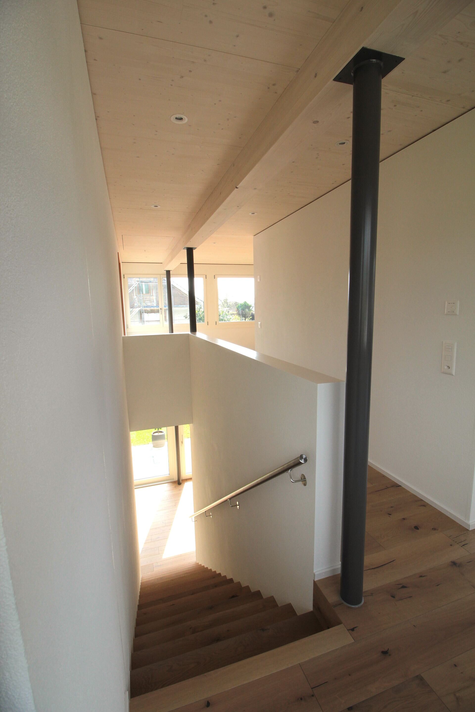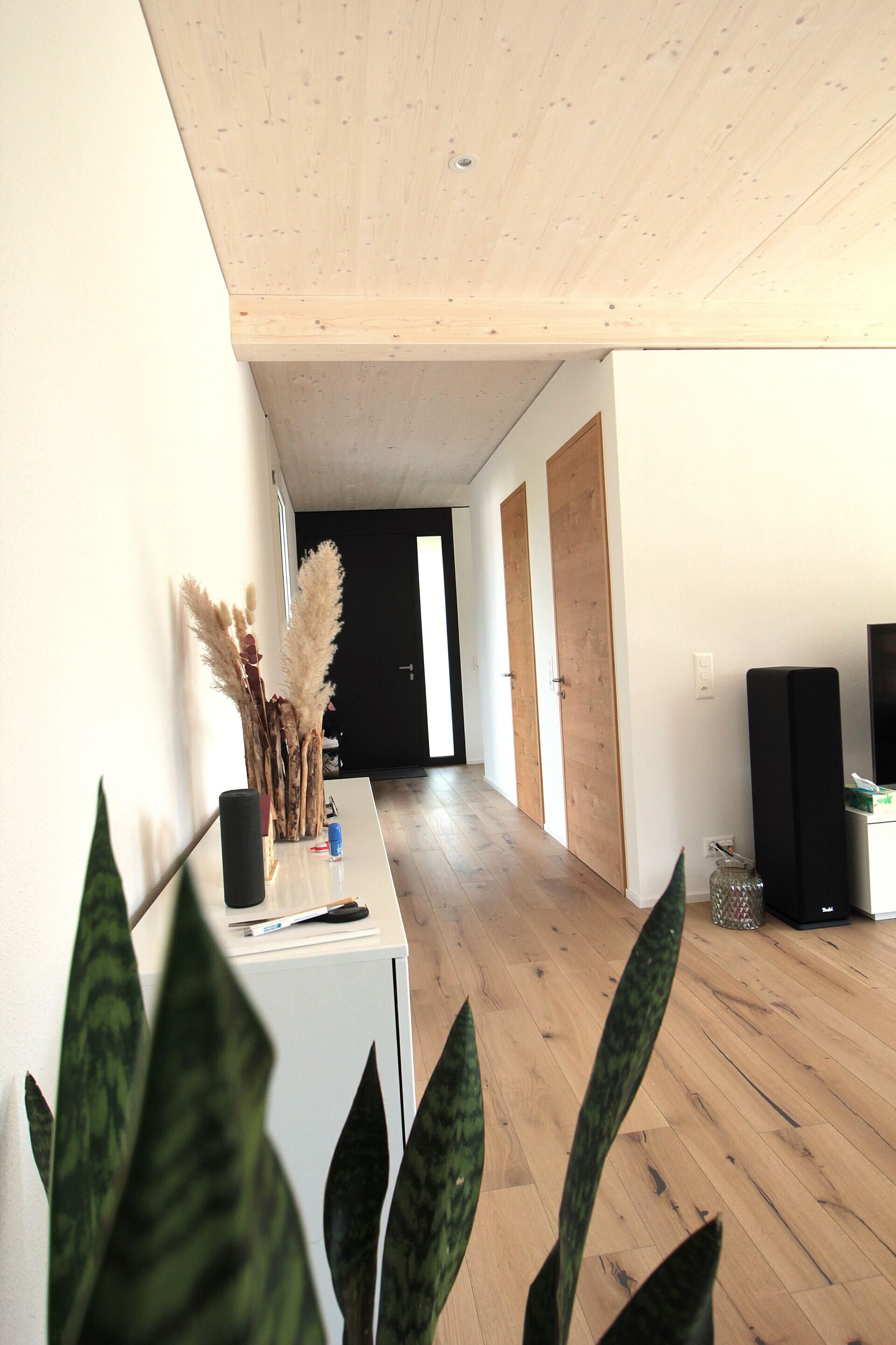 Für ein junges Paar durften wir in Rüti ein modernes, kubusartiges Einfamilienhaus planen und realisieren. Die klare, schlichte Architektur wird durch eine grosszügige Fensterfront geprägt, die Innen- und Aussenraum miteinander verschmelzen lässt und den Blick in die grüne Umgebung öffnet.