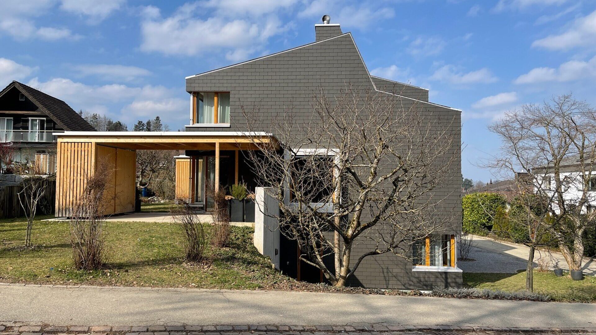 Die neuen Dachelemente und die Fassade aus Eternit garantieren dank effizienter Wärme-, Feuchtigkeits-, Schall- und Witterungsschutz-Eigenschaften für Wohnbehaglichkeit.