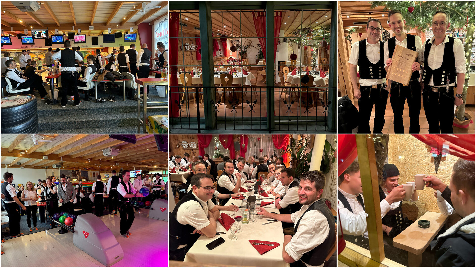 Auch an unserer diesjährigen Weihnachtsfeier wurde traditionellerweise die Zimmermannstracht ausgeführt. Neben Spielspass beim Bowlingspielen in Wetzikon und leckerem Essen im Restaurant WüeriStadl Mönchaltorf durften wir auch auf ein Jubiläum anstossen: