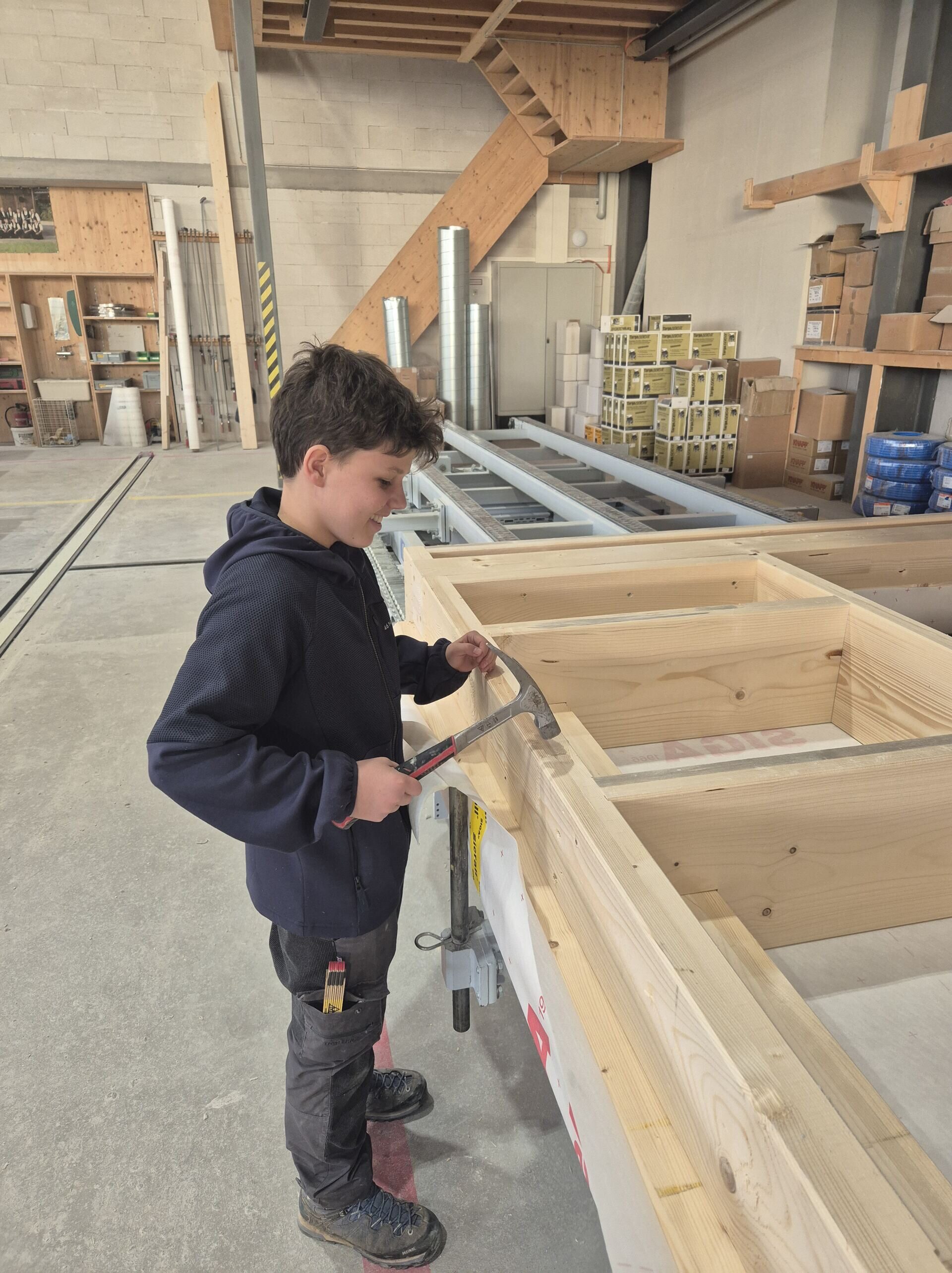 Sechs Jungs zwischen 10 und 12 Jahren erhielten bei uns und in der Schreinerei Widmer AG am Zukunftstag spannende Einblicke in die Produktion und auf der Baustelle.