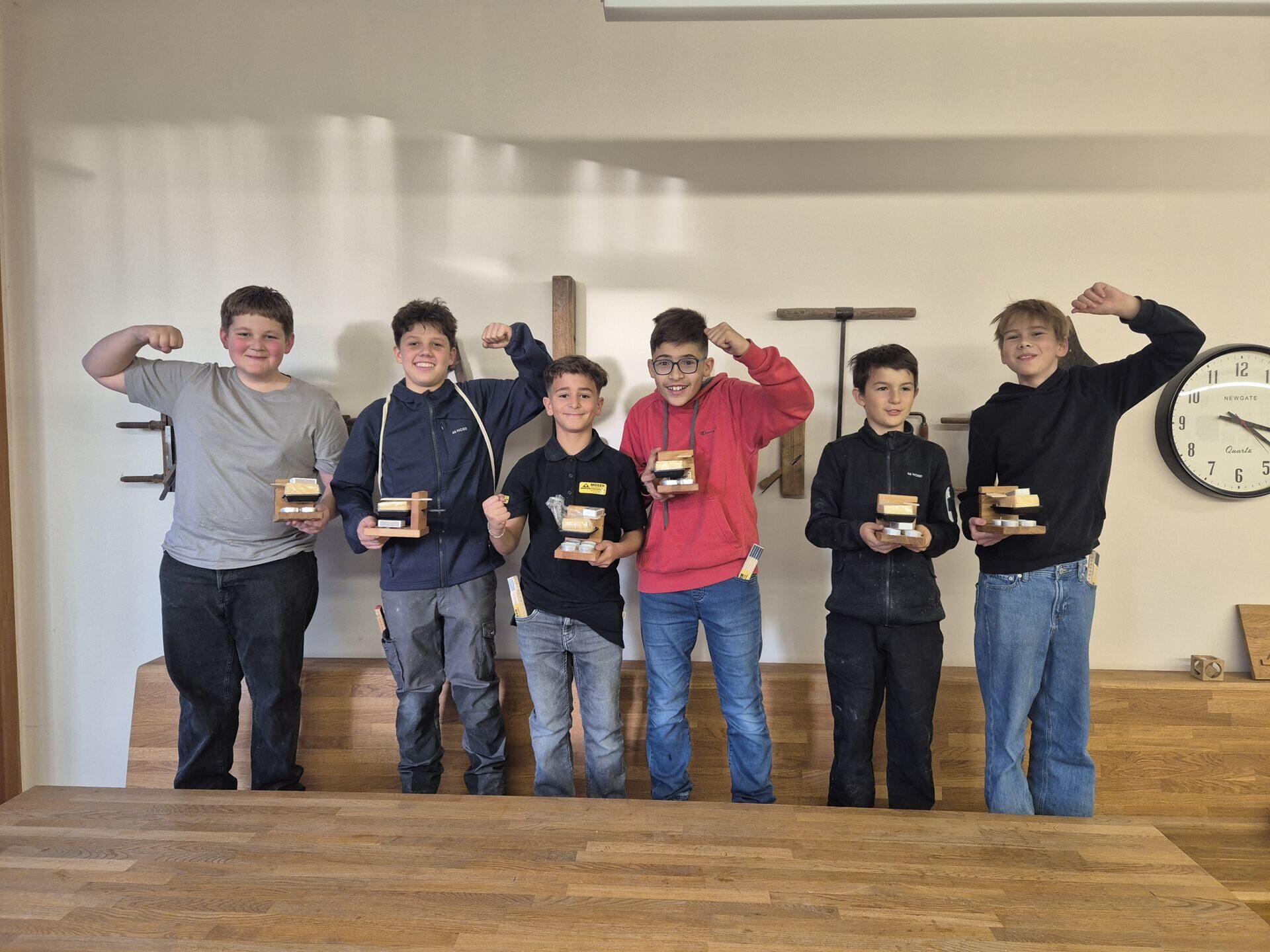 Am Nachmittag wartete ein besonderes Highlight: Gemeinsam mit Christian Widmer / Schreinerei stellten die Jugendlichen ihr eigenes Raclette-Öfeli her. Mit viel Neugier und handwerklichem Geschick wurde gesägt, geschliffen und zusammengebaut. Am Ende durfte jeder sein selbstgemachtes Öfeli stolz mit nach Hause nehmen.