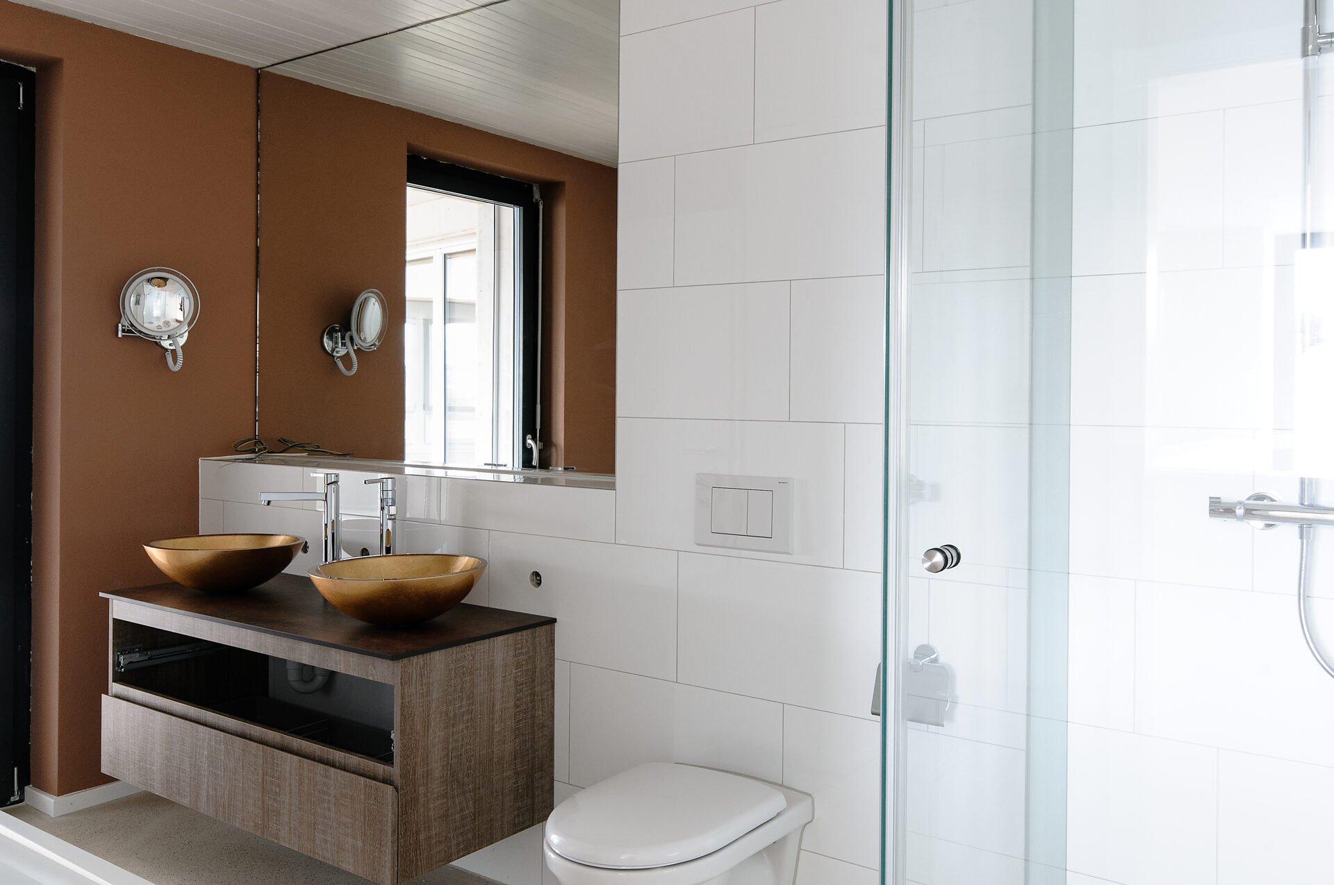 6-geschossiges Mehrfamilienhaus mit Wohnungen und Büro, Fassade in Welleternit.