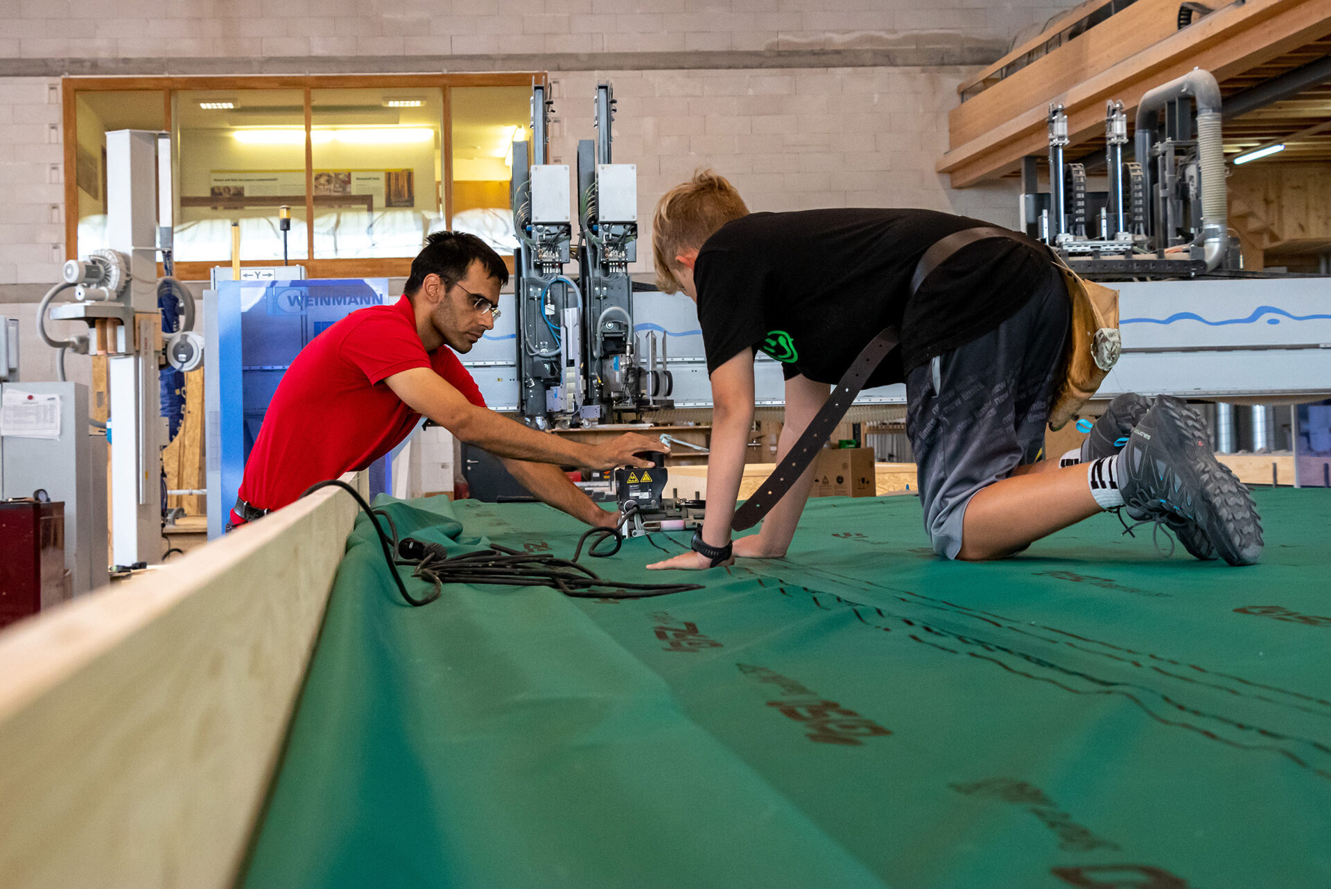 Damit Du einen umfassenden Einblick erhältst, wirst Du verschiedene Aufgaben und Tätigkeiten kennenlernen, den Lernenden über die Schulter schauen und Dich mit ihnen austauschen. Dies wird Dir die vielseitige Arbeit der Zimmerleute näherbringen und Dir die Möglichkeit geben, die richtige Ausbildung für Dich zu finden.